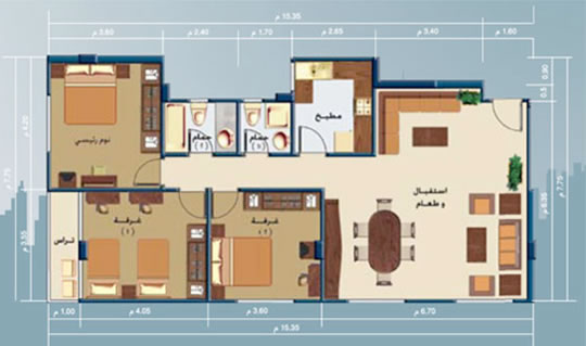 - عدد 2 غرف نوم – غرفة معيشة - حمام